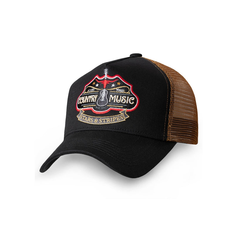 Kahevärviline western stiilis rekkamehe nokamüts, mis koosneb viiest paneelist ilma keskõmbluseta, ning on tõeline pilgupüüdja. Vastupidav puuvillane korpus on kvaliteetne ja tugev. Esiküljel olev uhke tikand, õhuline võrk ja kuue dekoratiivse õmblusega nokk muudavad selle lahedaks kollektsiooni esemeks. See sobib ideaalselt välitegevusteks. Nokatsi kangast korpuse tipus on kaetud nööp, mis loob täiusliku viimistluse. Suurust saab reguleerida tänu klassikalisele tagasikinnitusele kuklal. See tagab ideaalse sobivuse. Puuvillane sisepael tagab optimaalse niiskuse reguleerimise. Trendikas ja ajatu disainiga veokimehe nokamüts sobib mitmekülgselt iga stiiliga. Materjal: 100% puuvill - võrk 100% polüester.