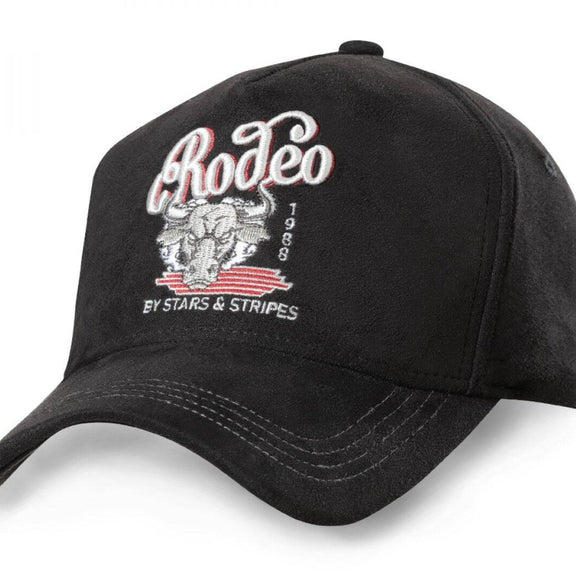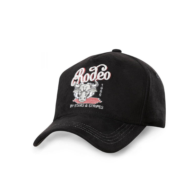 The stroke of genius among base caps: 5-panel western base cap in suede look! The hard-wearing body is high-quality and robust, while still nestling comfortably softly against the head. The elaborate 3D embroidery on the front and the suede-look visor with decorative stitching make this curved brim cap a cool collector's item. It is ideal for outdoor activities. The trucker cap has a button covered in cap fabric on the top, which creates the perfect finish. Adjustable in size thanks to the classic snapback closure at the back of the head. This guarantees the perfect fit. A cotton sweatband and embroidered air eyelets ensure optimum breathability and moisture regulation. The trendy trucker cap in a timeless design can be combined with any style in a versatile way. Material: 90% polyester, 10% elastane.